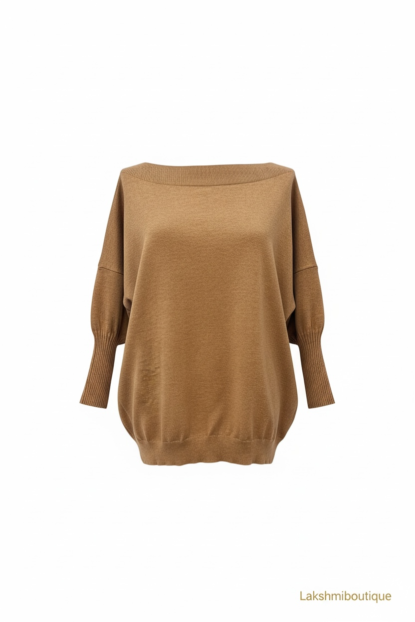 Caramel Cloud Off-Shoulder Triko %100 Pamuk İthal