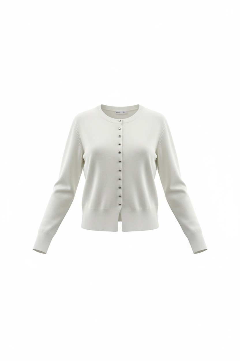 Kadın Beyaz Düğmeli Pamuklu Hırka