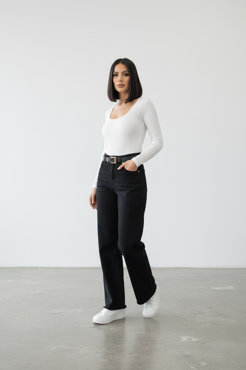 Siyah Yüksek Bel Wide Leg Jean – Black Edge